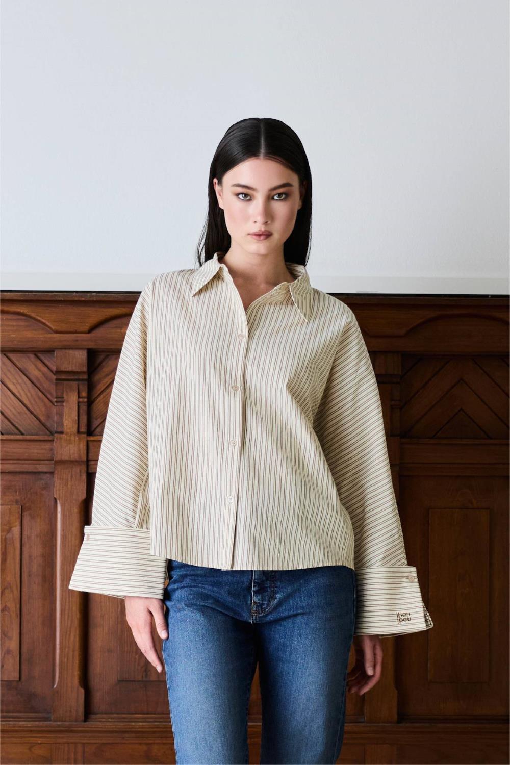 Atari Shirt fra Iben i fargen Brown og Oat Stripe.