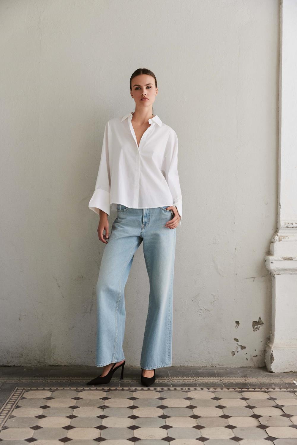 En klassisk, oversized skjorte med brede mansjetter. Kort og vid passform. Den ultimate, kule skjorten som passer til alt!