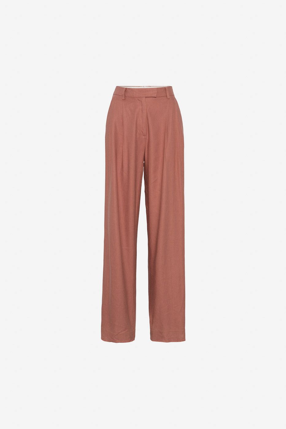 Ava Trouser fra Camilla Pihl er en skreddersydd dressbukse med legg foran. Buksen har høy midje, beltehemper, sidelommer og tverrlommer bak. Lukkes med knapp og skjult glidelås foran. Den har rette ben med full benlengde.