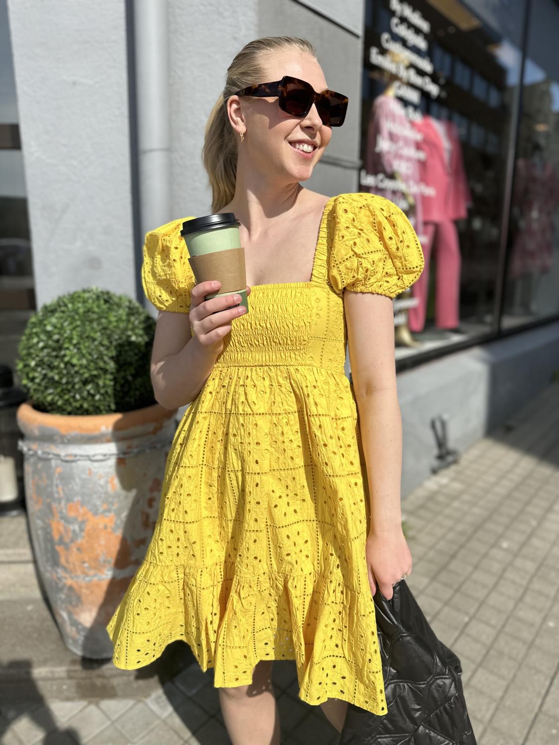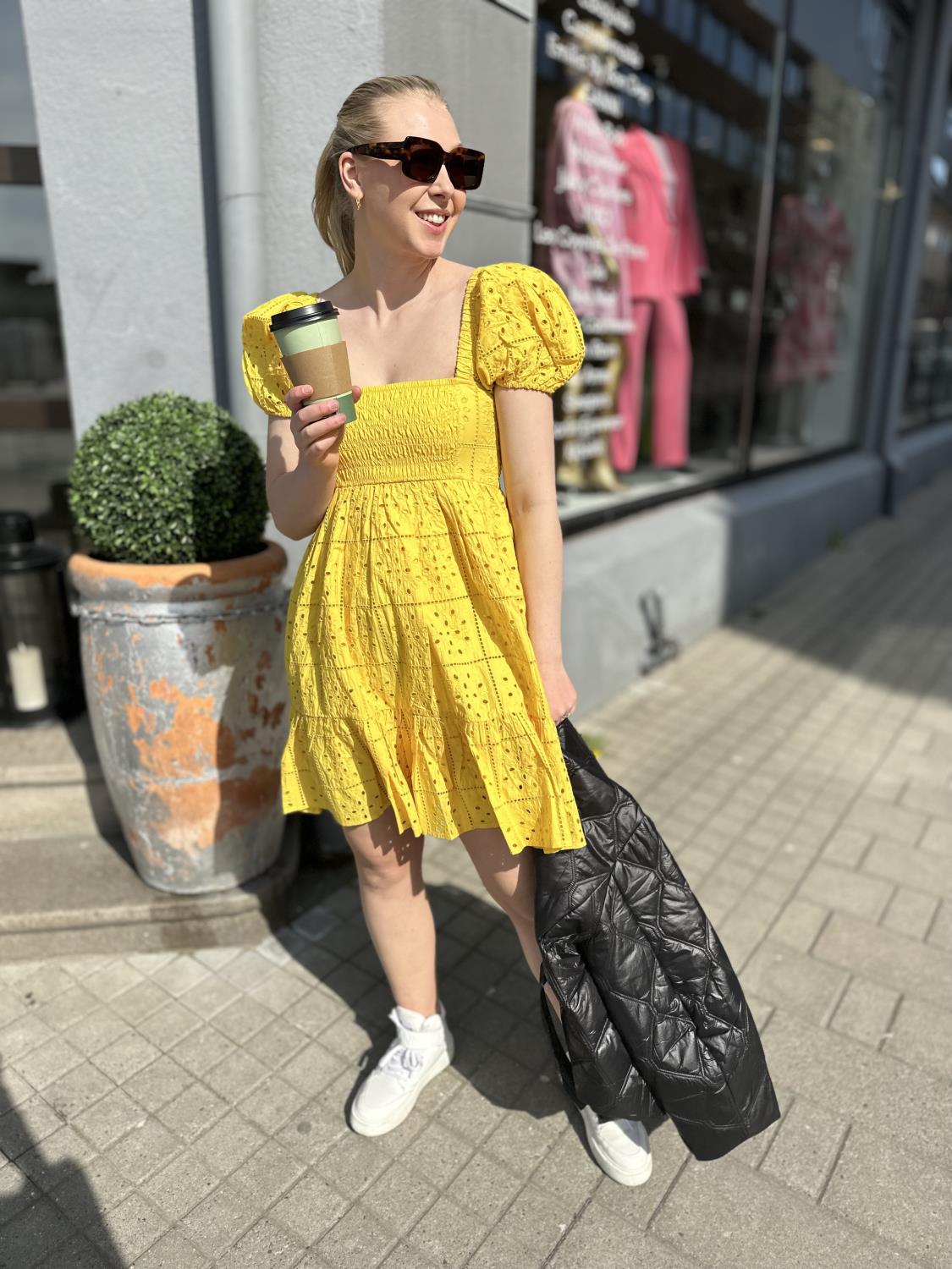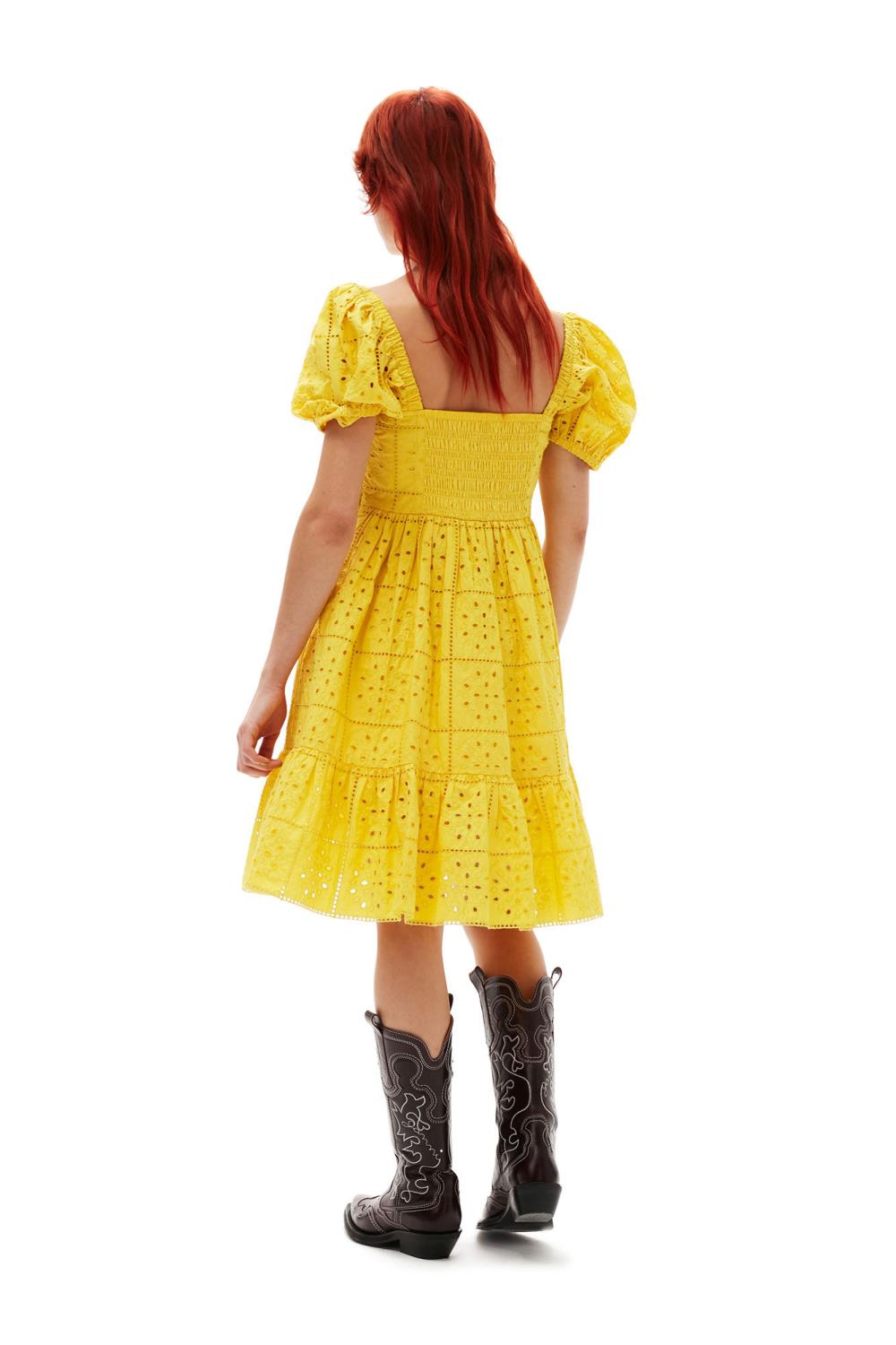Broderie Anglaise Mini Dress er laget av organic cotton. Kjolen er designet for en vanlig passform og har firkantet hals, lav rygg, smock-overdel, glidelåslukking og puffermer med elastiske kanter.