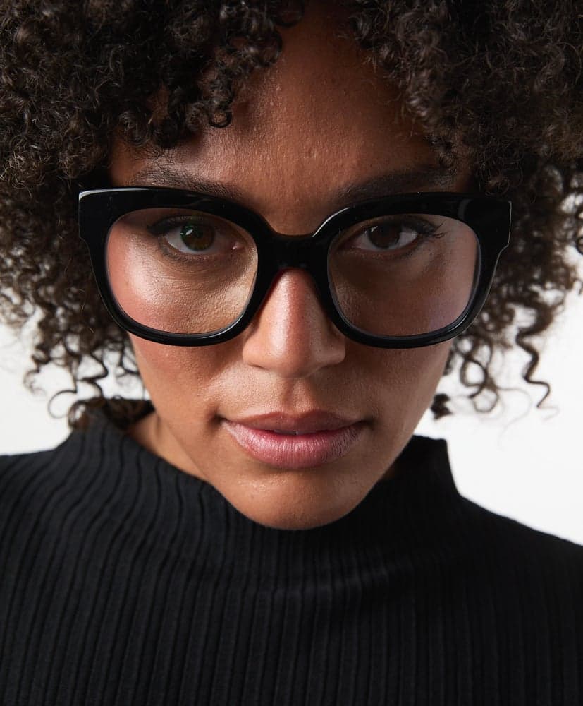 Chloe er herlig stor og vil få hvem som helst til å føle seg som en filmstjerne. Den mørke nyansen og det dramatiske designet gjør den til et dristig statement-brille.