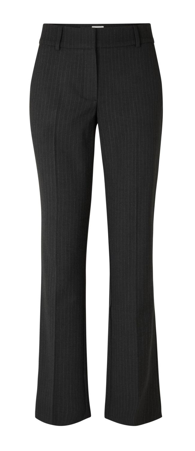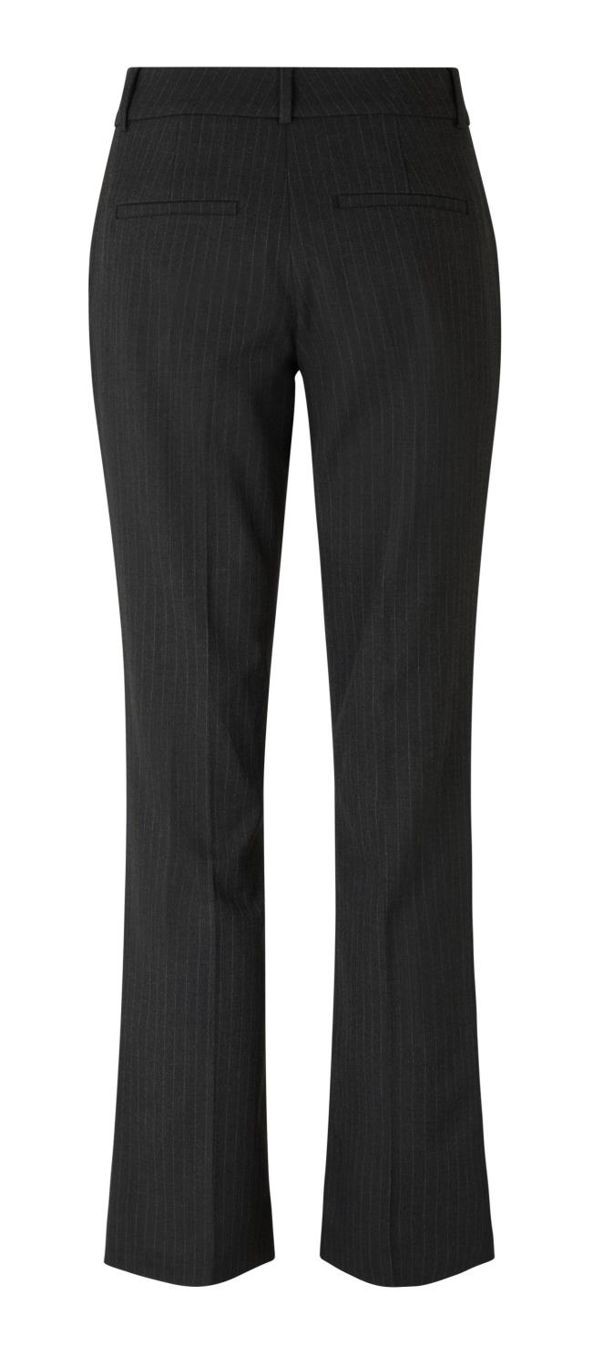 Clara Charcoral Pin Stripe fra FiveUnits. Lekker bukse med striper. Normal høyde på livet, lange bein med sleng og smal passform.