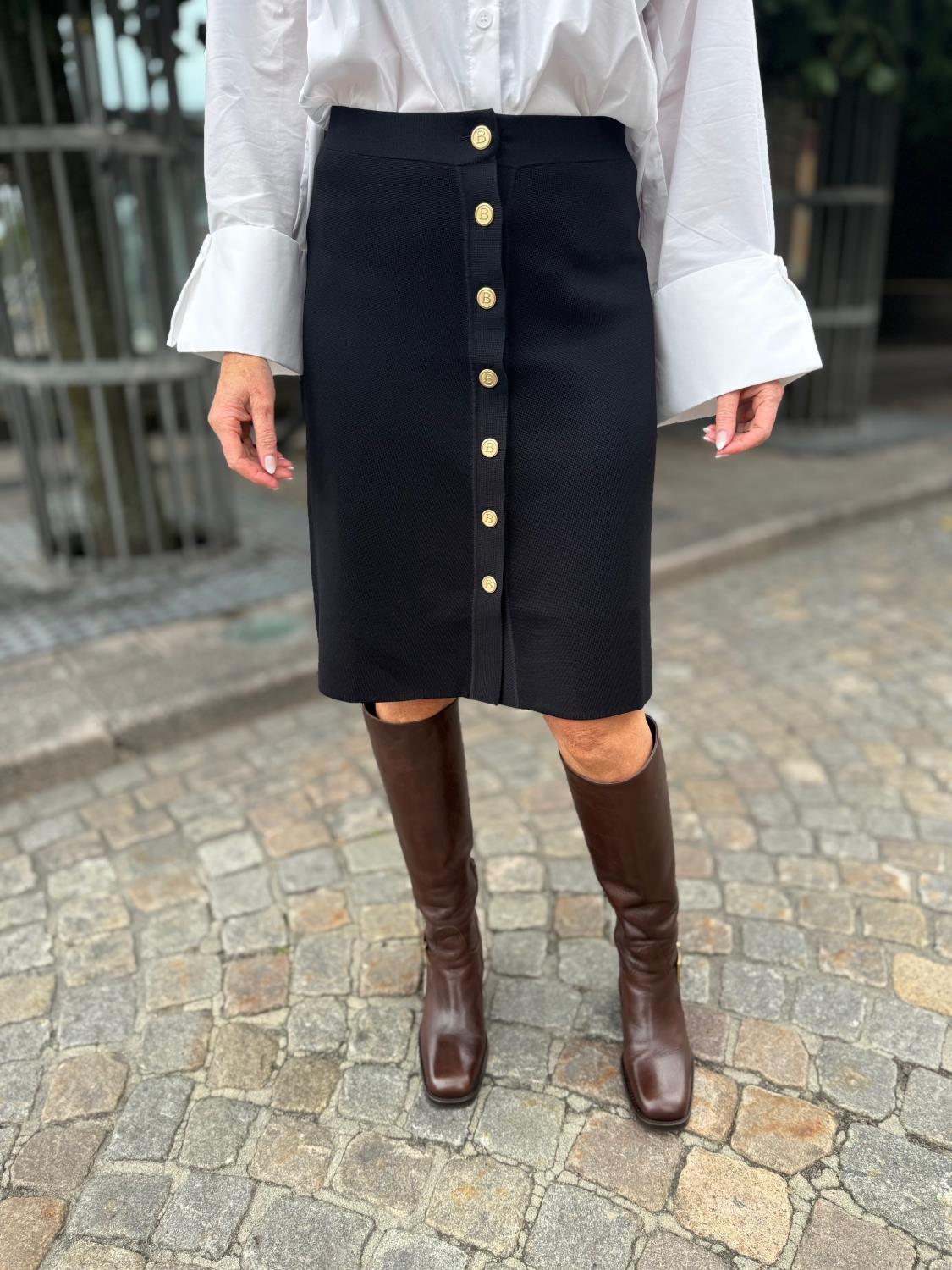 Clarie Skirt fra Busnel er et elegant og tidløst A-formet skjørt som kombinerer klassisk design med moderne raffinement. Skjørtet er laget i eksklusiv viskose og har en flatterende silhuett som passer til enhver anledning. Den rette fasongen får et løft med den ikoniske gullknapperekken foran, som gir et sofistikert uttrykk og en feminin touch.