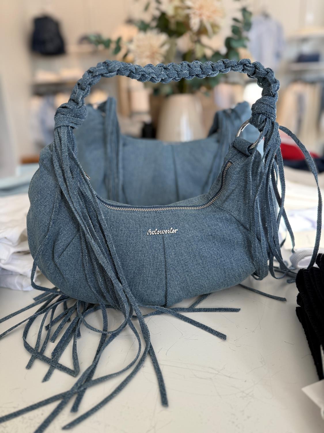 En lekker veske i denimstoff som rommer akkurat det du trenger å ha med deg.