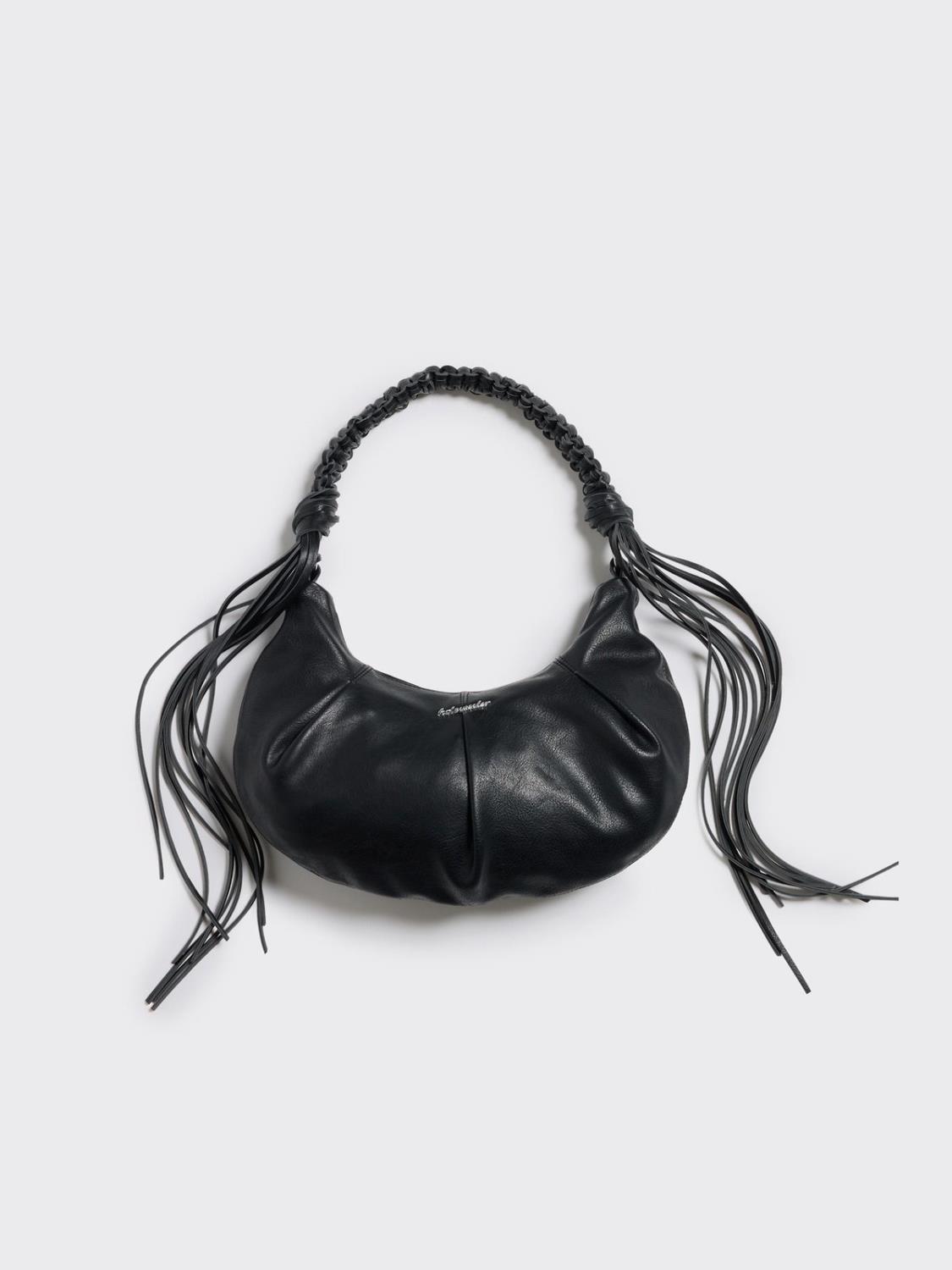 Cocoon Small Bag fra Holzweiler er laget i imitert skinn, og er en av merkets bestselgere. Vesken har et avslappet design med kule detaljer og glidelåslukking. Den flettede stroppen kan bæres over skulderen eller i hånden og er fullført med lange frynser.