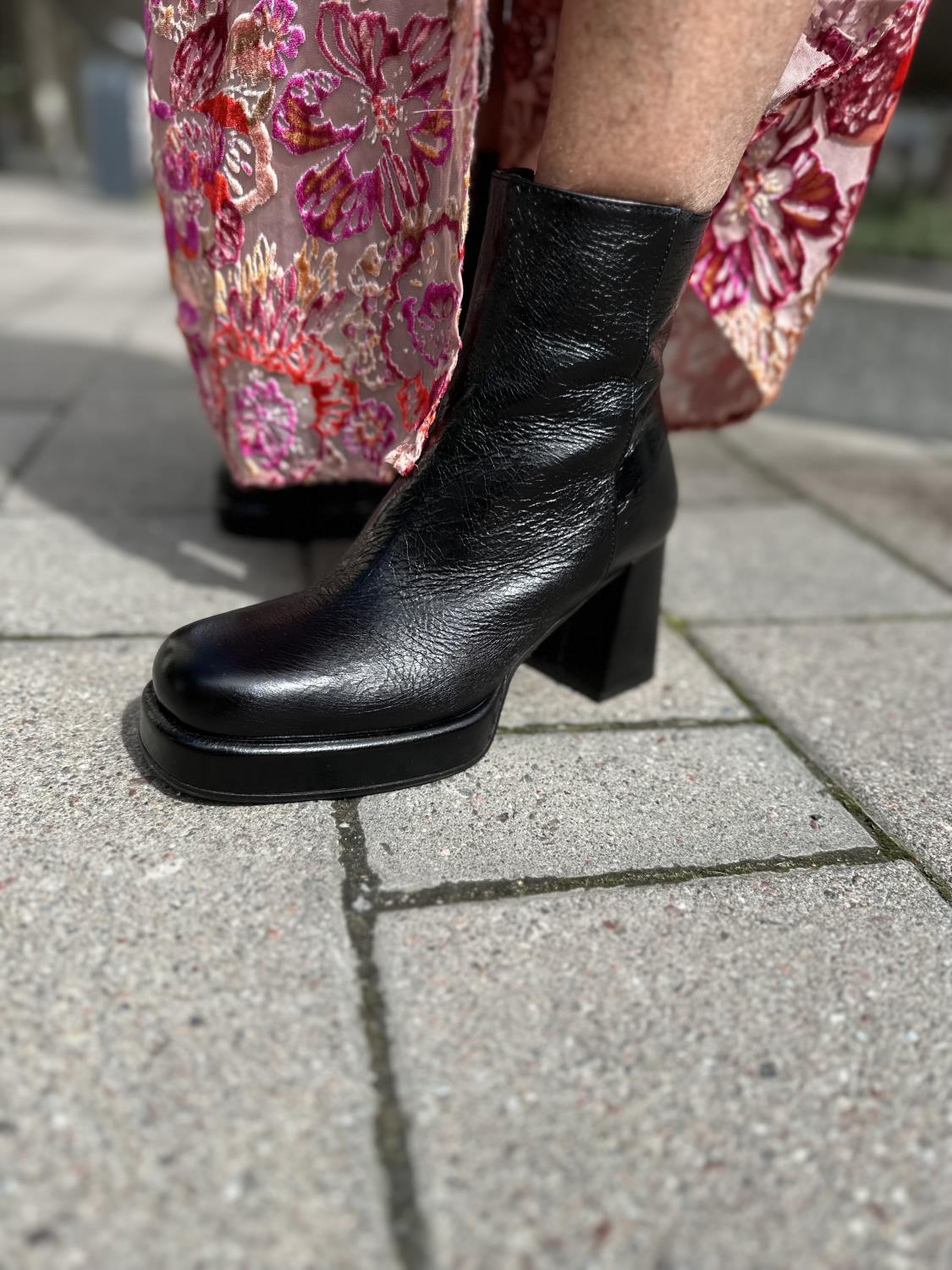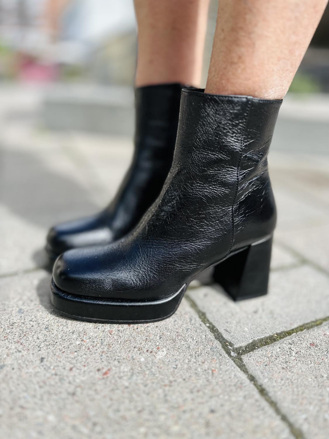 Høy boots fra Laura Bellariva. Laget i mykt skinn med firkantet tupp og tykk hel.