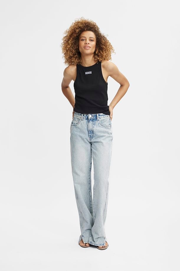 DrewGZ SL Top fra Gestuz. Denne gangen med en logo på! En enkel singlet er et must have i garderoben. Vi elsker å bruke den under en fargerik skjorte, for en kul lag-på-lag look. Denne hvite varianten fra Gestuz er den ultimate singleten, med smale stropper, rund utringning og ribbestrikk.