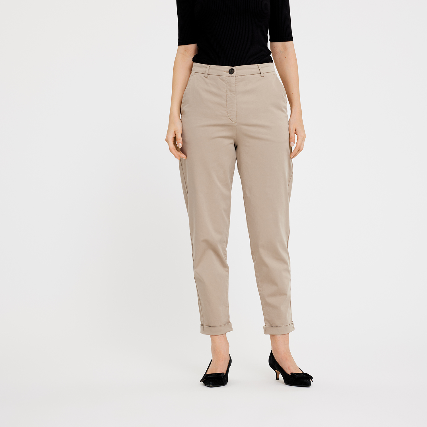 Emma 057 Varm Sand fra Five Units. Den klassiske, perfekte chinosbuksen! Aslappet passform med stikklommer, beltehemer og avsmalne bein.