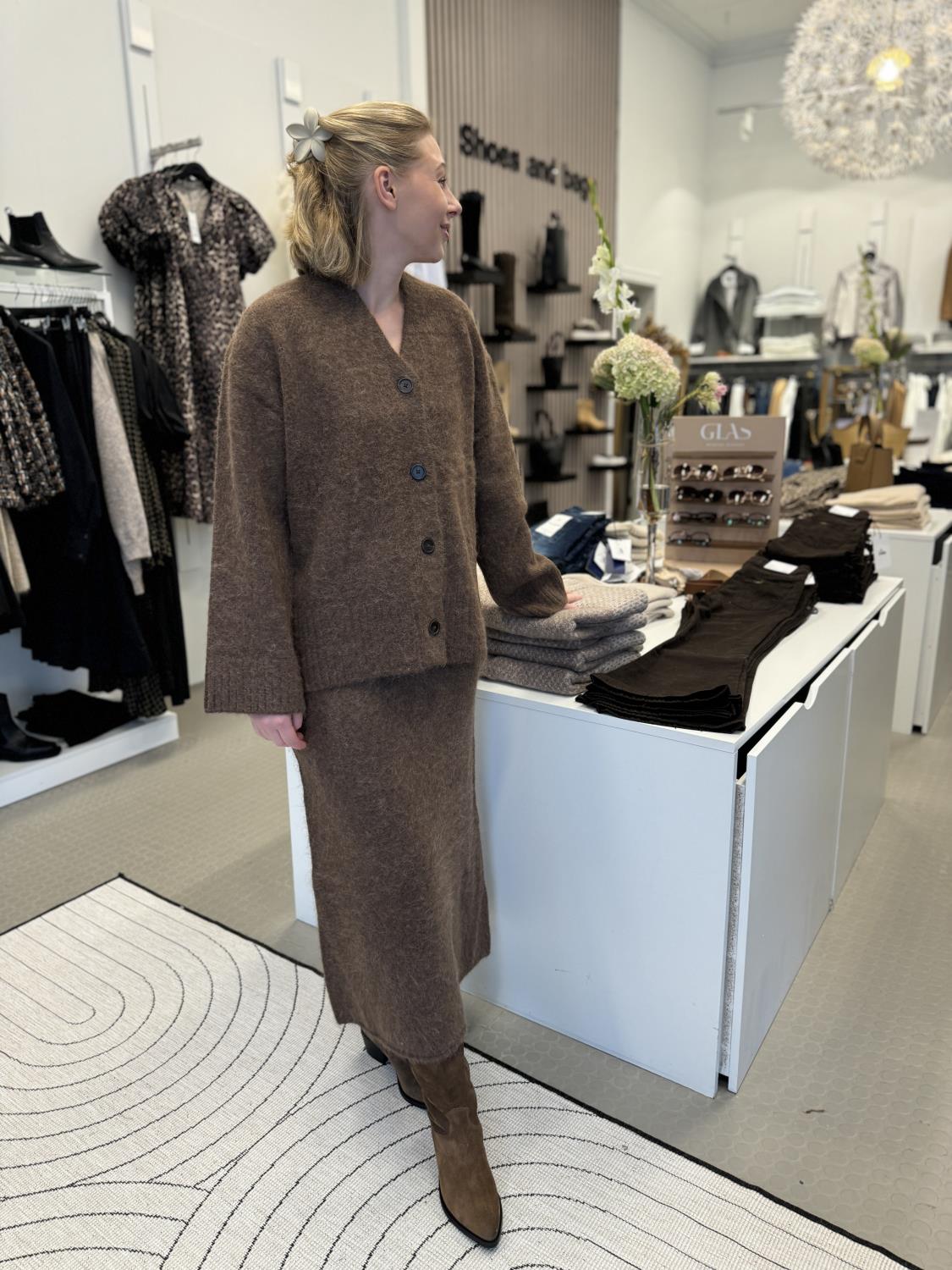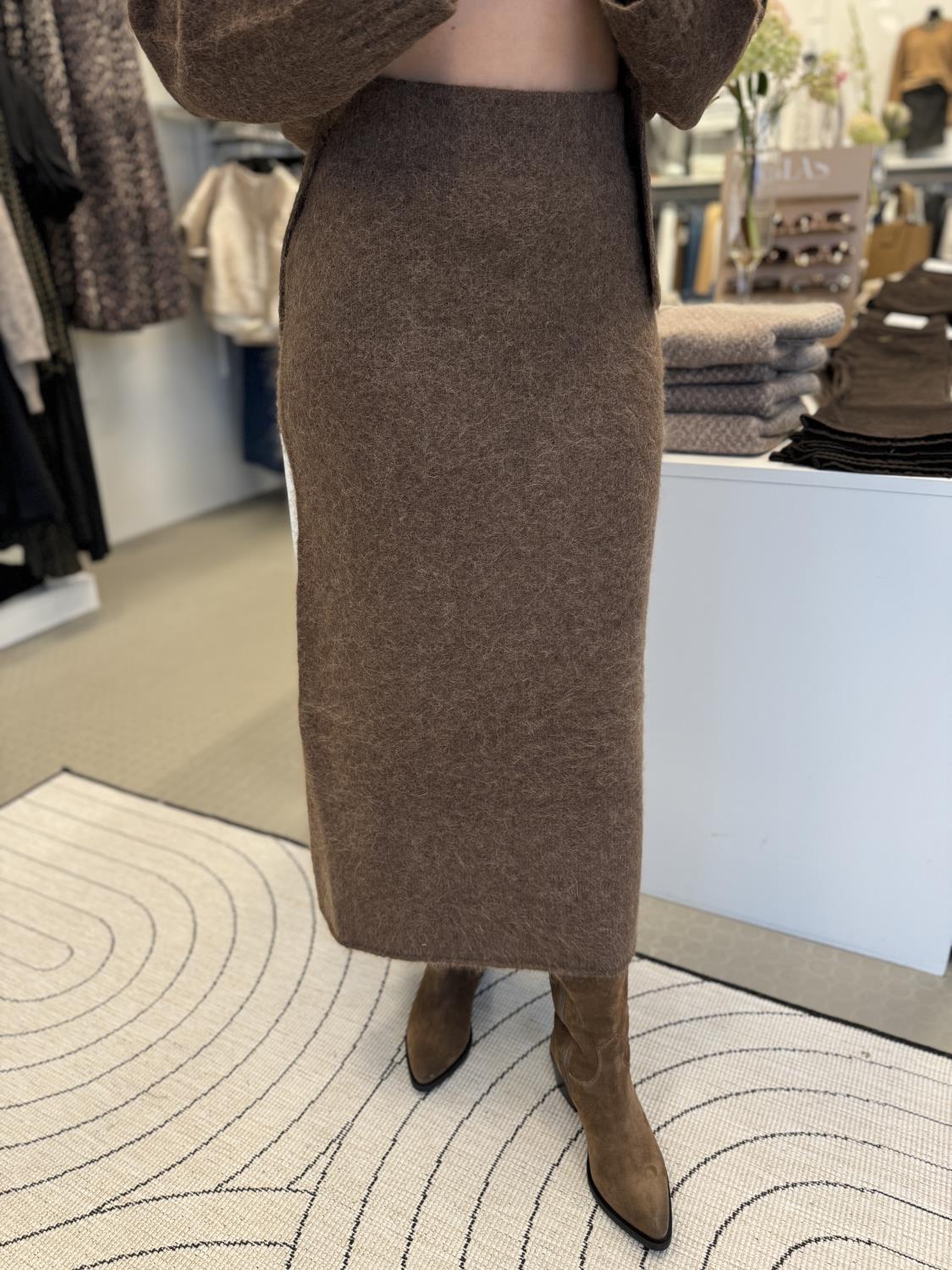 Fure Fluffy Skirt fra Holzweiler. Et lekkert, lang strikket skjørt med strikk i midjen. Match med tilhørende cardigan for helt sett.