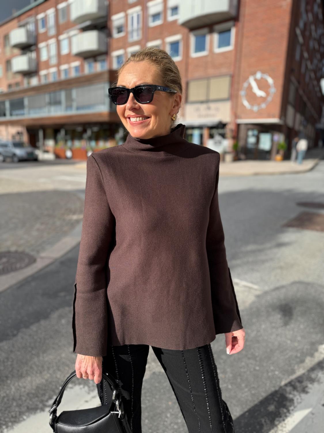 Ginny Button pullover fra Alma. Normal passform med høy hals og fine knappedetaljer.