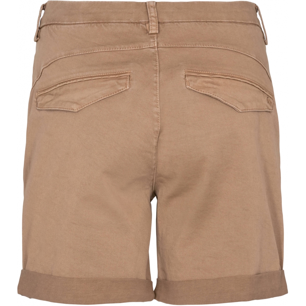 Karmey chino-shorts kommer med oppslåtte ben og høy stretch.
