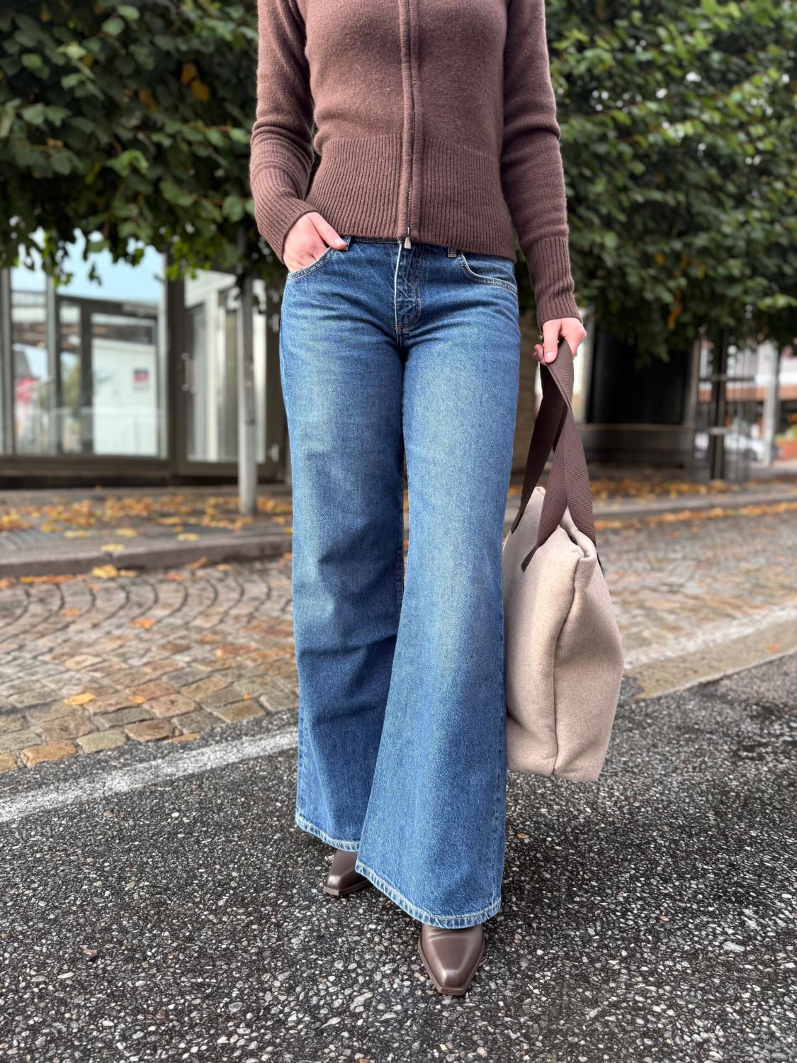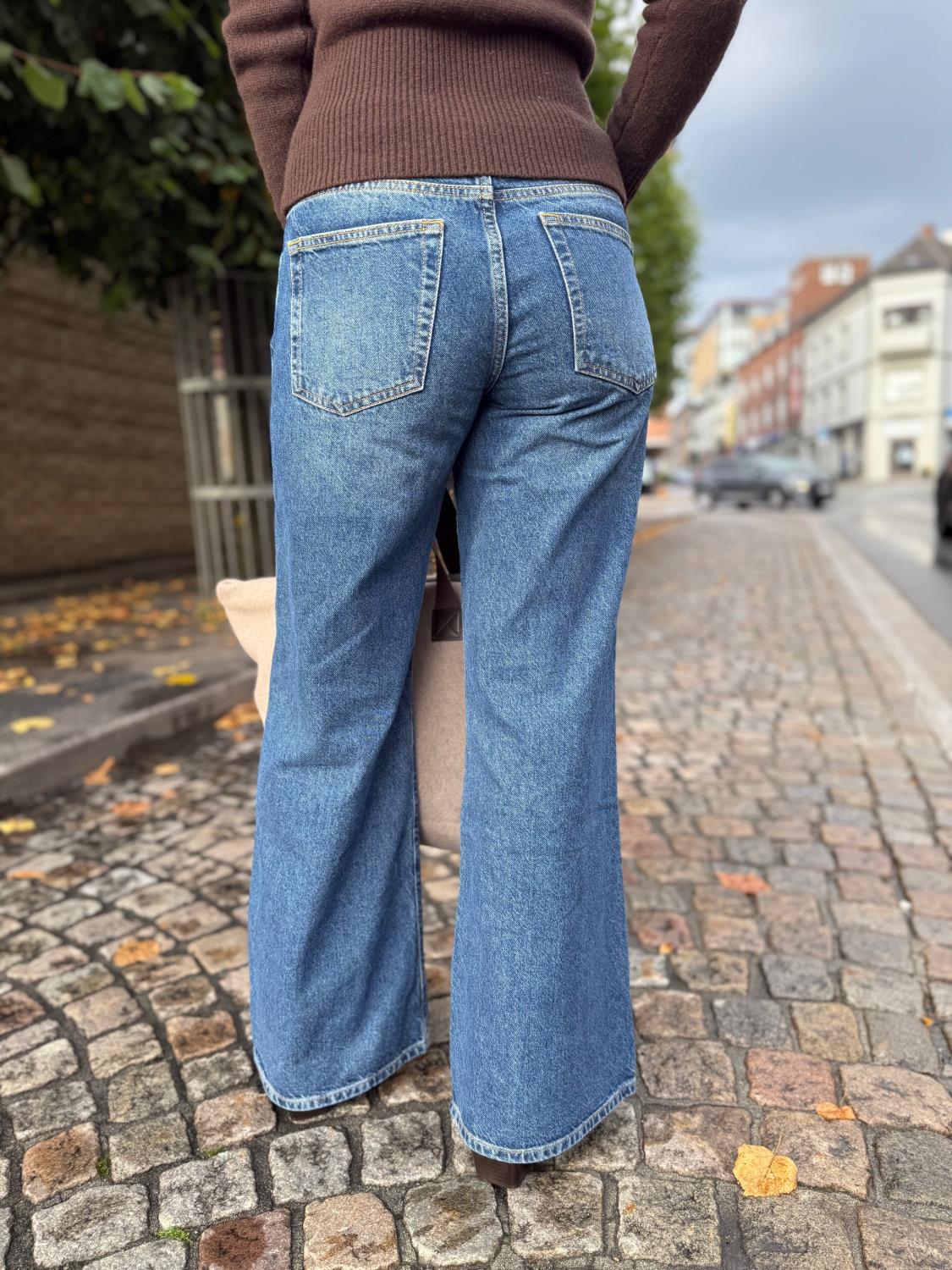 Kyoto fra Jeanerica er en stilig dongeribukse i en mørk vask. Buksen har lav midje og løs passform med utsvinget silhuett. Den har beltehemper, fem lommer og full lengde. Lukkes med knapp og skjult glidelås i front.
