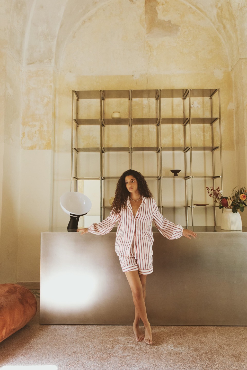 Lilia Shorts fra Camilla Pihl er et must-have til sommergarderoben – like komfortabel som den er stilren. Shortsen kommer i et lett og pustende materiale med delikate rosa striper som gir et feminint og avslappet uttrykk.