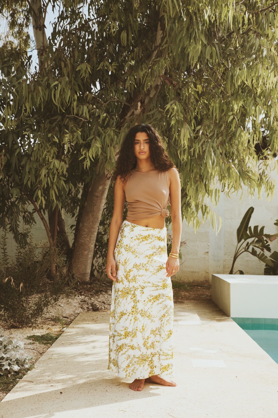 Lunar Skirt fra Camilla Pihl er et elegant maxiskjørt med delikat blomsterprint. Skjørtet har en lett, flytende passform som faller vakkert og gir et feminint uttrykk – perfekt til sommer, ferie og varme dager.