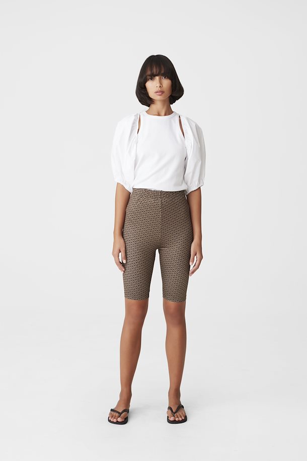 Tettsittende sykkelshorts med ekstra stretch og et dristig trykk er det perfekte lagdelingen. Pair med en overdimensjonert blazer og joggesko for et moderne utseende.
