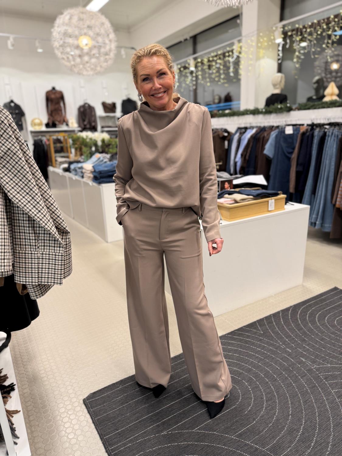 dressbukse med vide ben fra det norske Iben i fargen Taupe Grey.