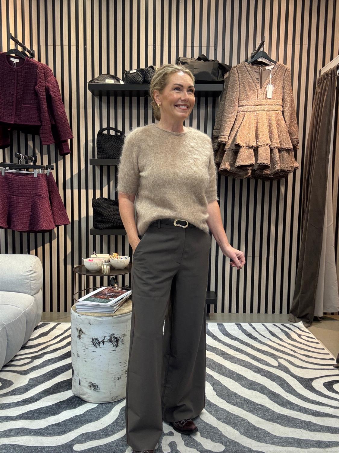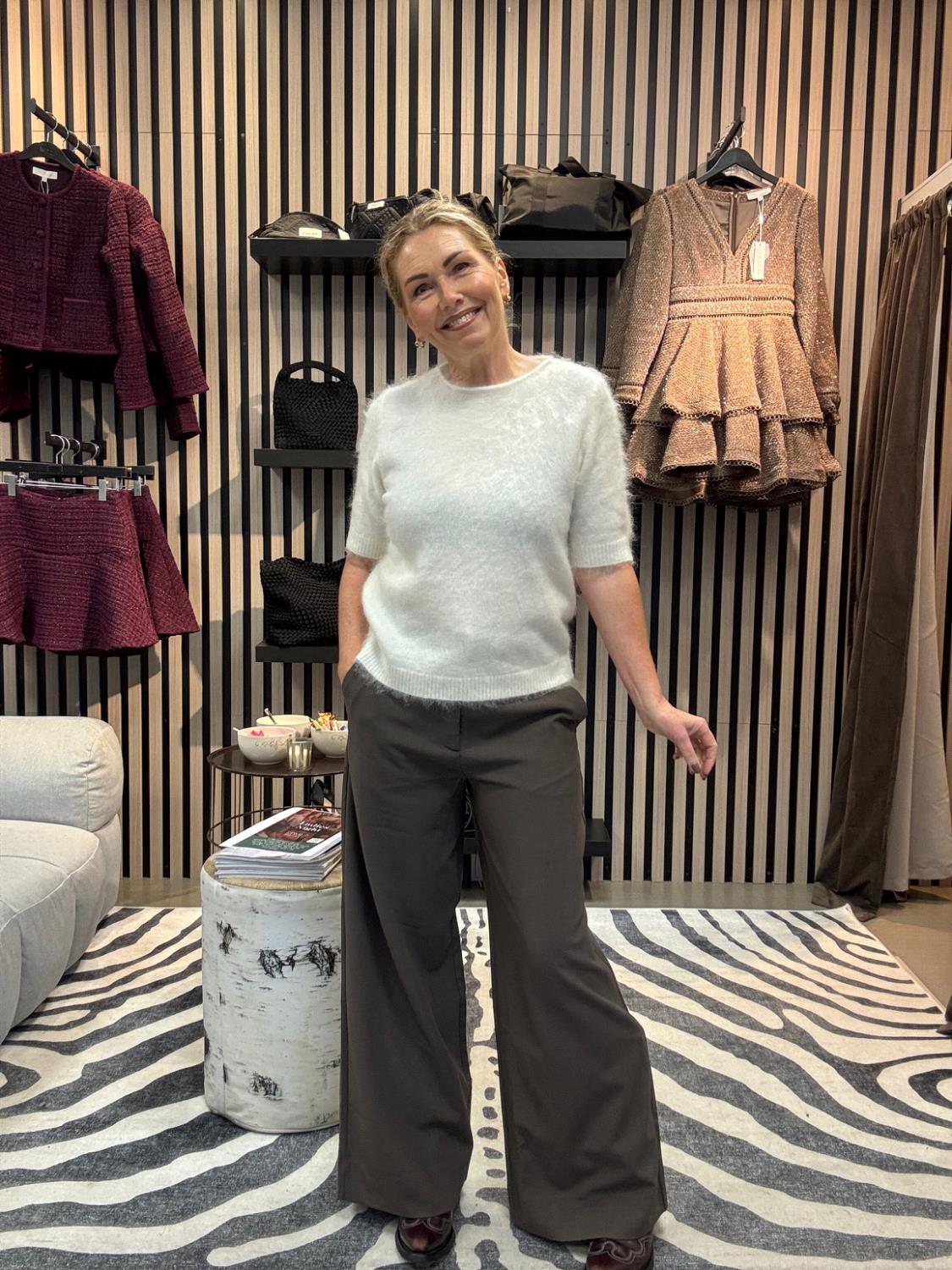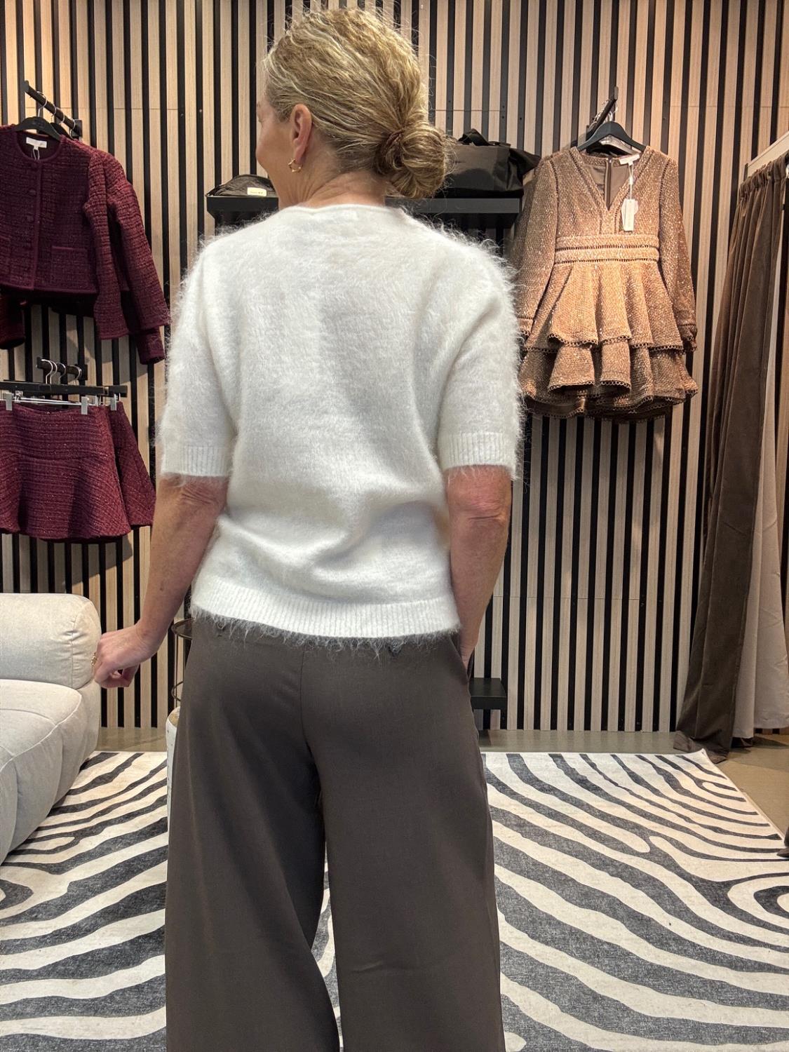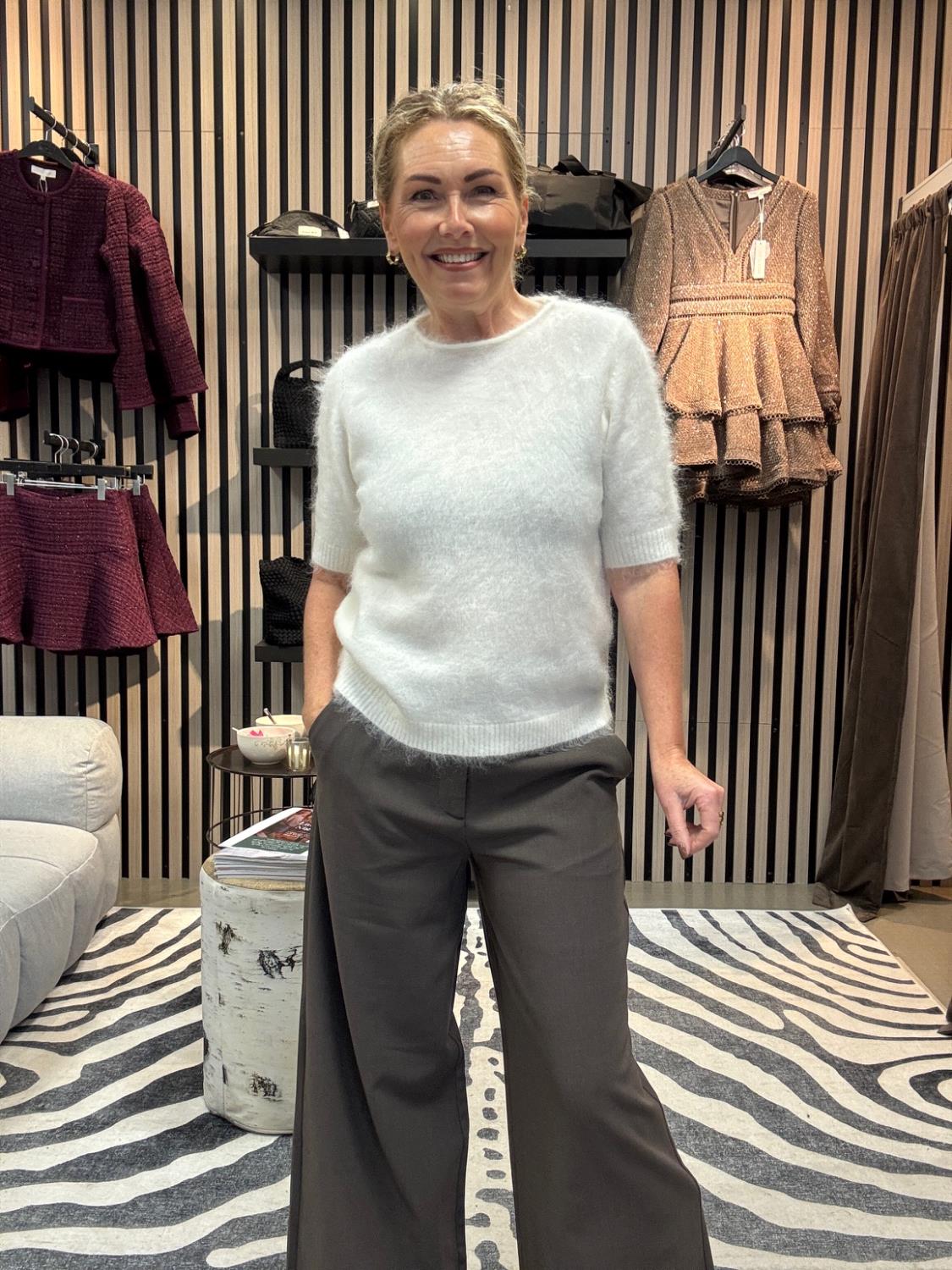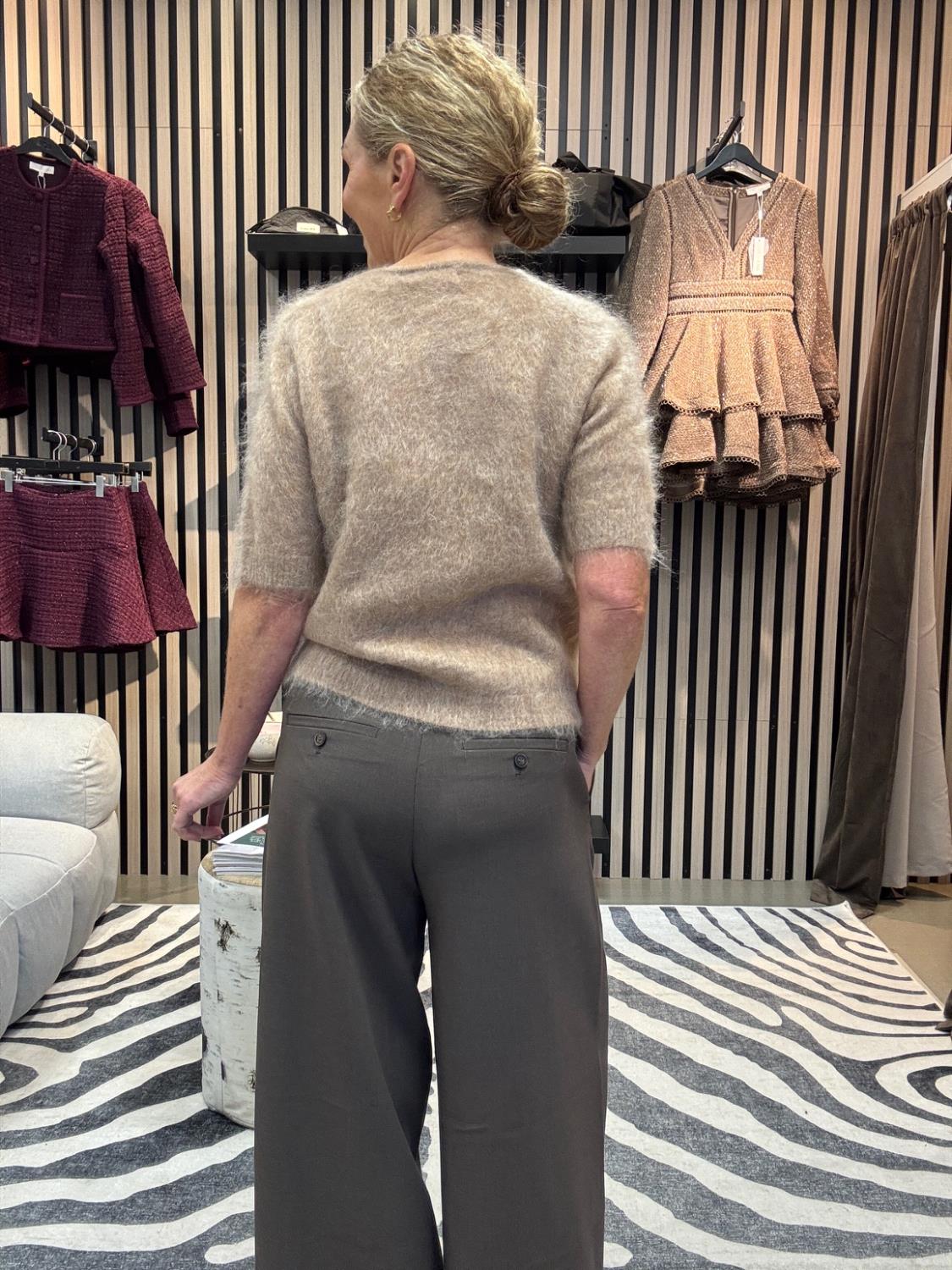 Lekker myk kidmohairtopp med arm til albuen. Fint og style med en dressbukse eller et langt skjørt. Vi putter den gjerne under en dressjakke med en jeans til