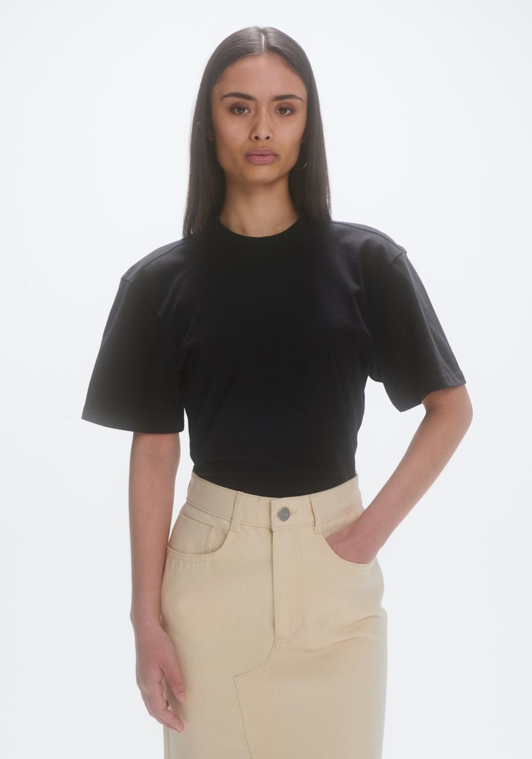 Shaped tee fra Les Coyotes de Paris. Shaped tee er en figursydd t-skjorte med brede skuldre og sømdetalj bak i en 100% økologisk bomullsjerseykvalitet.
