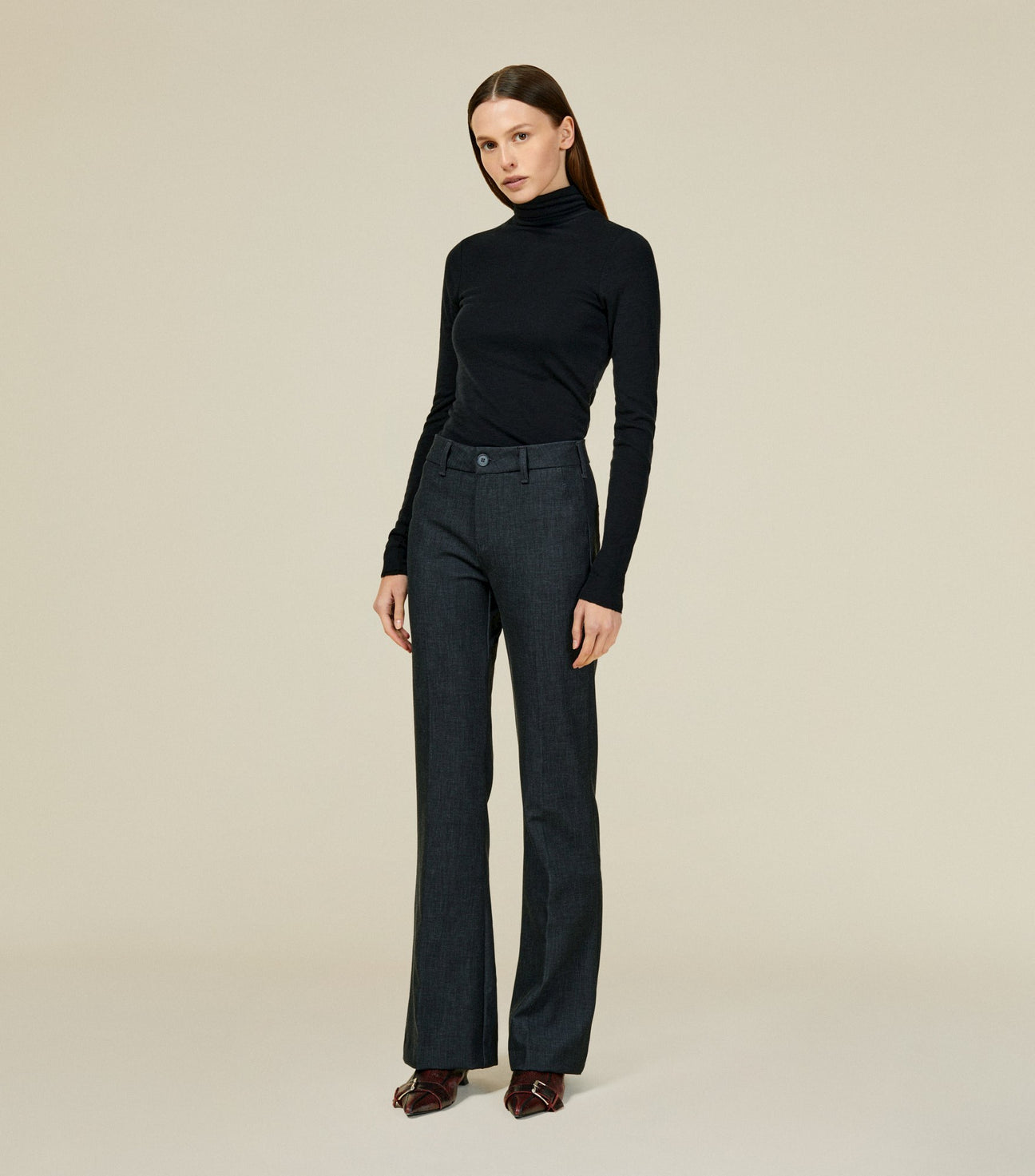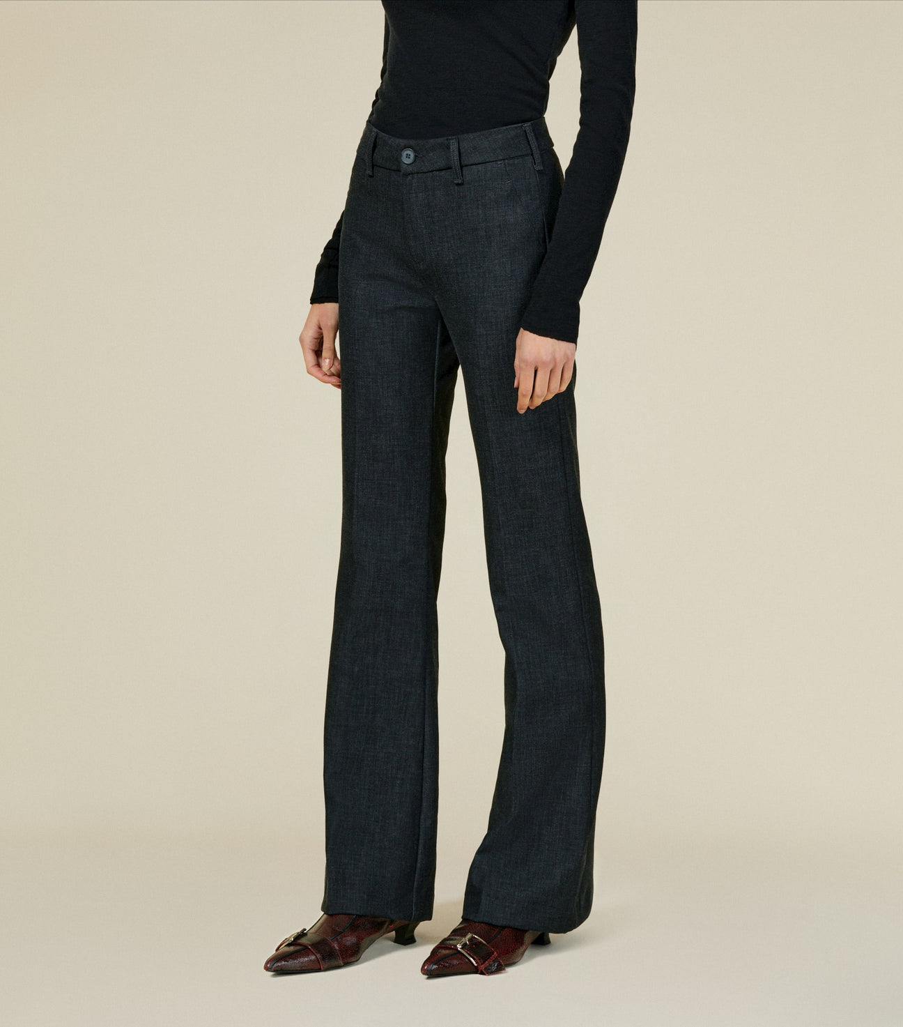 Silvia er vår sofistikerte versjon av fem-lommers slengbukse . Laget i et førsteklasses stoff som ligner ull samtidig som det er elastisk, skånsomt mot huden og lettere å vaske.