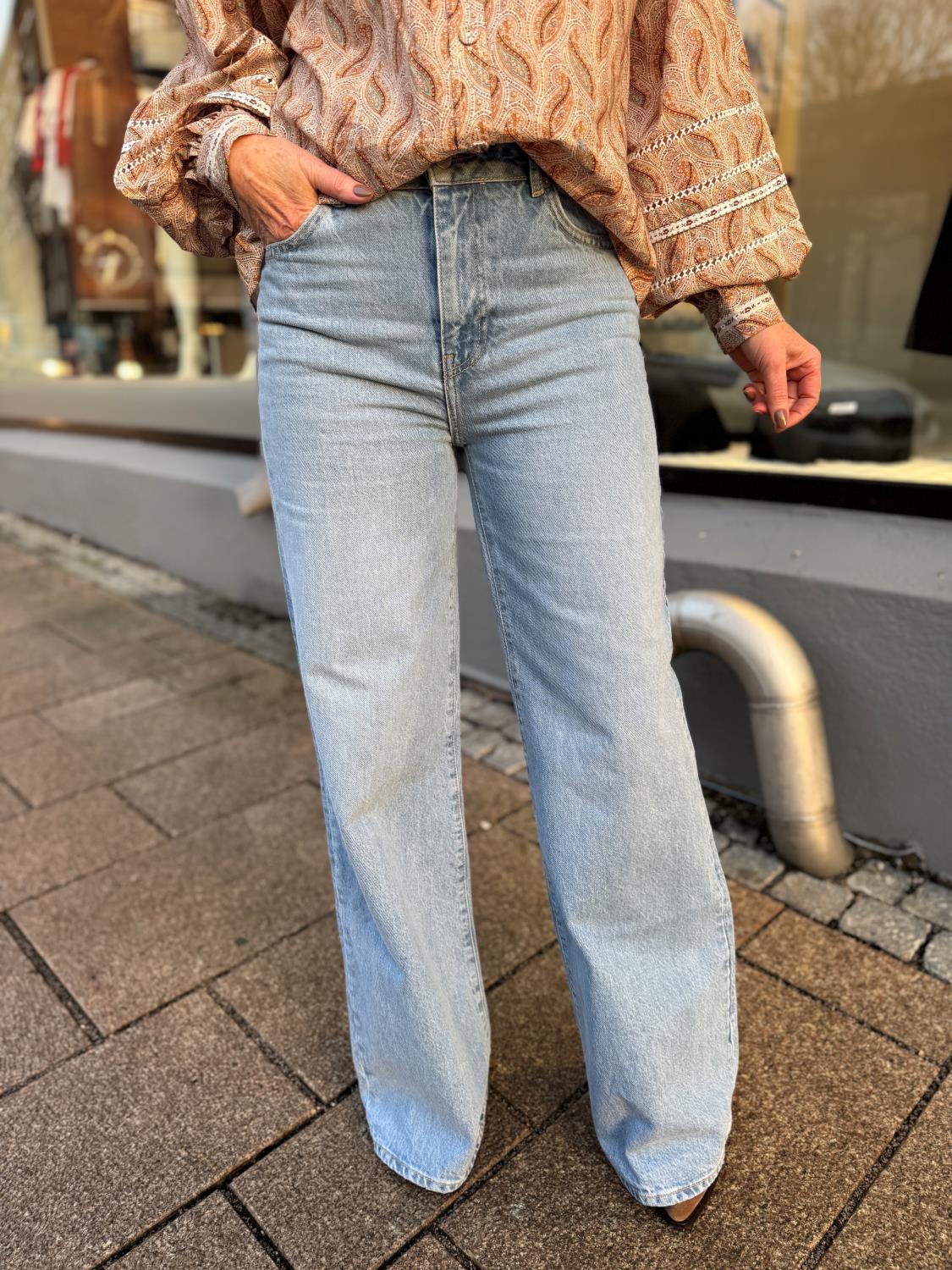Taylor er en buksemodell i en klassisk lys vask. Taylor sitter smalt rundt midjen, hoftene og lårene, og har utsvingte ben i full lengde. Buksen har fem lommer, beltehemper og er high-waist. Lukkes med knapp og skjult glidelås i front. Den kommer i et behagelig bomullsmateriale uten stretch.