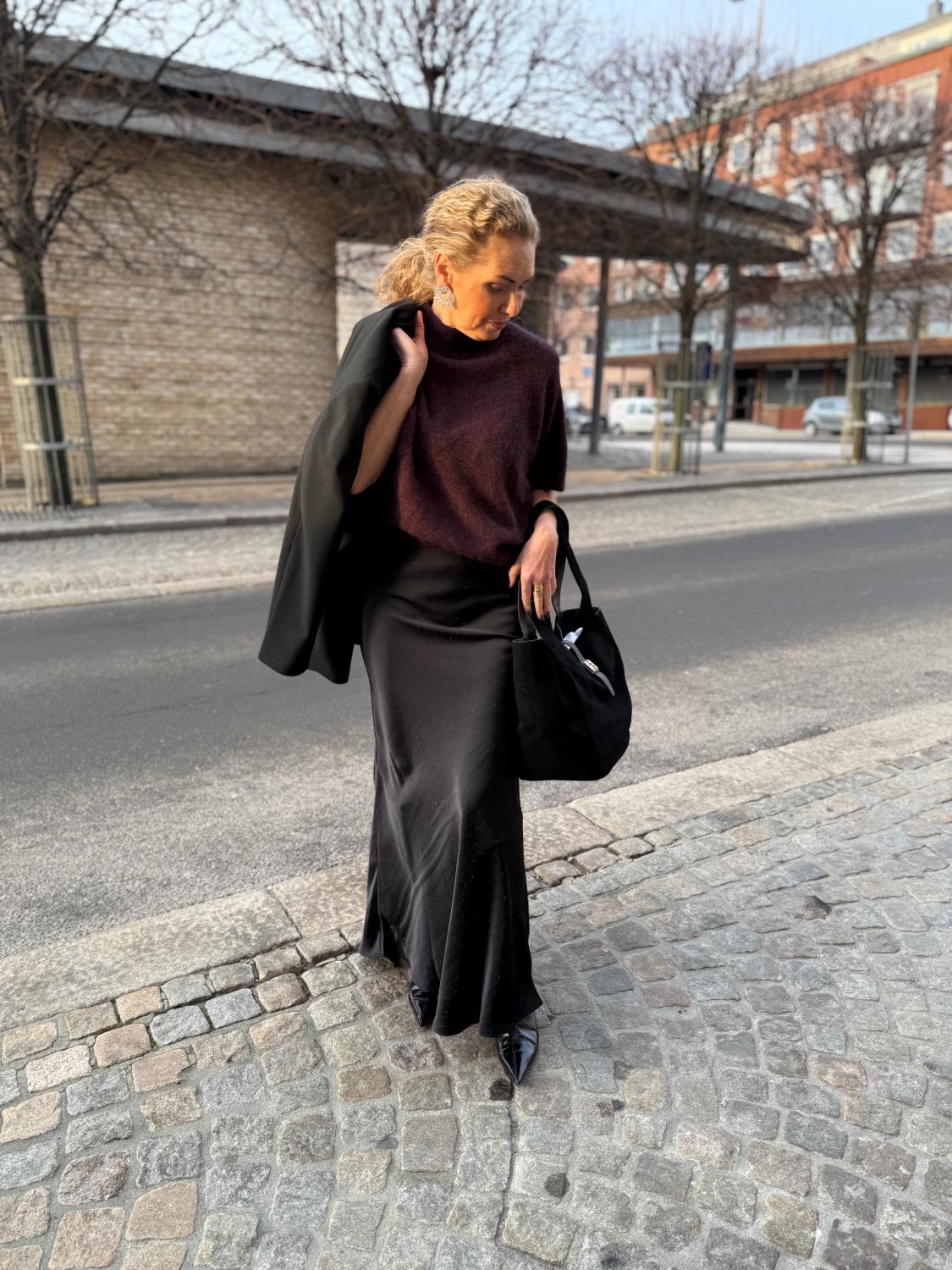 Viso Heavy Sateen Bedaz Skirt er et langt skjørt med elastikk inni i midjen. Skjørtet er skråskåret og har en veldig flatterende passform. Kvaliteten er en fin drapert sateng med steiner. Modellen er 176 cm høy og har på seg størrelse 36.