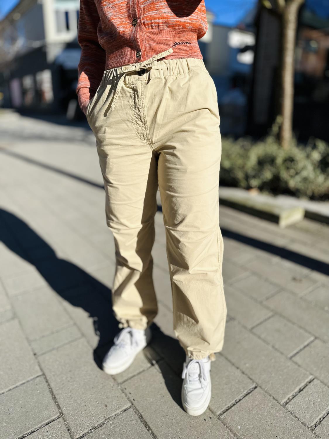 Washed Cotton Canvas Draw String Pants Pale Khaki fra Ganni.