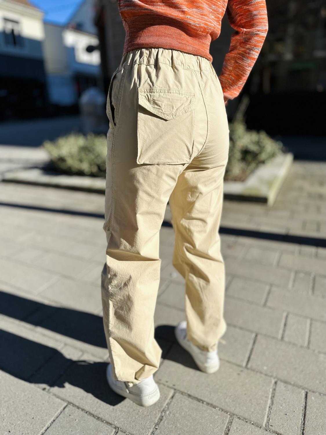 Superfine bukser i lett, chrispy bomull med knyting i livet og nede på beina. Kul lomme bak som gir en «cargo» effekt.
