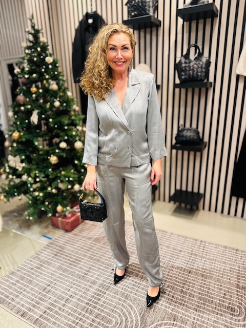 Grey Washed Satin-skjorten er laget av en blanding av LENZING™ ECOVERO™ viscose. Skjorten er designet for en vanlig passform og har krage, V-hals, lange ermer og en dobbelspent knappelukking.